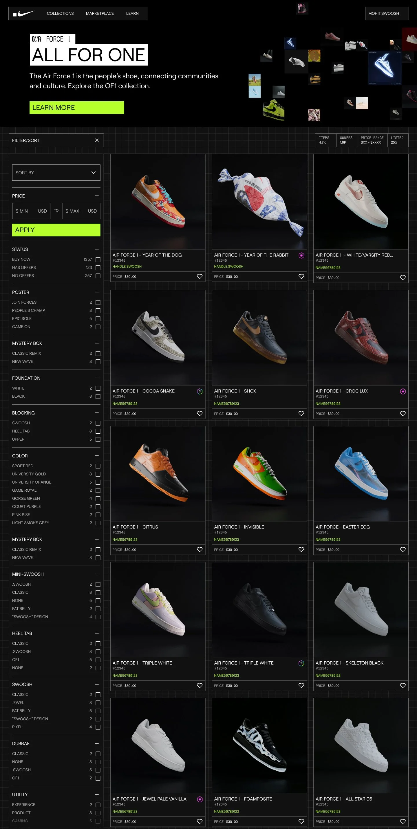 Inspired by the original AF1 ads, we co-created the OF1 posters—our first .SWOOSH virtual creations—using the community's top picks from the OF1 voting brackets.